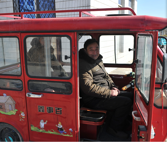 畫面中的駕駛員是淮海農(nóng)場四分場社區(qū)54歲的黃玉青,弱智又低收入的他,每月靠400元的低保維持著簡單的生活。2017年農(nóng)場組織科長林一高和四分場二十八大隊(duì)隊(duì)長王扣林與其結(jié)成精準(zhǔn)幫扶對(duì)子后,他在獲得幫扶的同時(shí),也更是激發(fā)了黃玉青自主創(chuàng)業(yè)的動(dòng)力。黃玉青每天開著一輛百事鑫電動(dòng)三輪車,停泊在醫(yī)院門前接客,在方便他人的同時(shí),也為自己增加了收入。瞧,載著客人的黃玉青笑得是多么地燦爛。