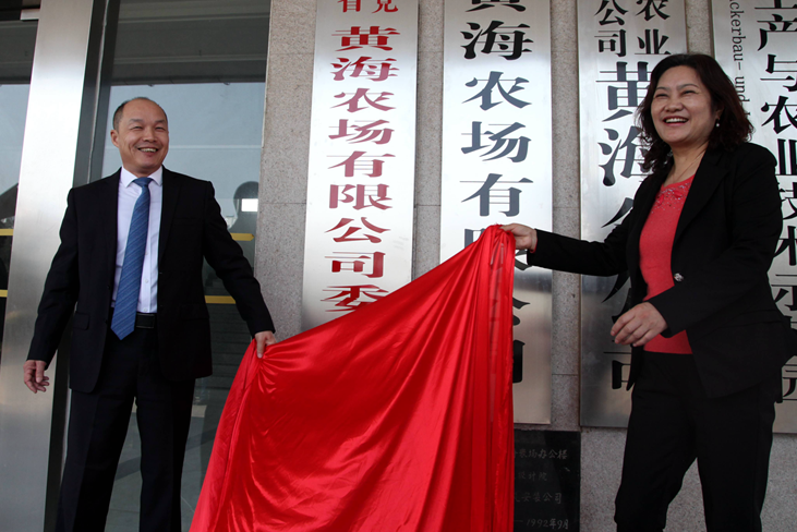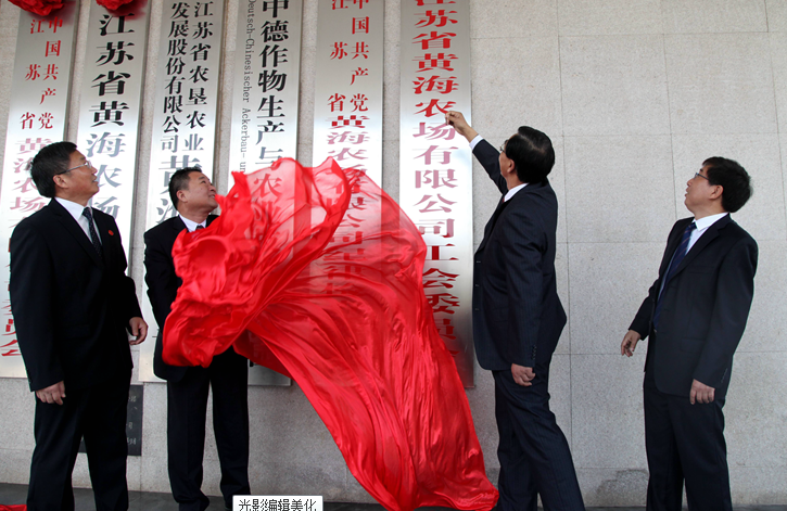 41日,中國共產黨江蘇省黃海農場有限公司委員會和江蘇省黃海農場有限公司、中國共產黨江蘇省黃海農場有限公司紀律檢查委員會、江蘇省黃海農場有限公司工會委員會正式掛牌。標志著農場企業化改革邁出了實質性的、具有里程碑意義的一步,農場的發展也將翻開嶄新的一頁。黃海農場有限公司黨委書記王亦勤致辭,黃海農場有限公司董事長、總經理單祥忠主持掛牌儀式。王亦勤、單祥忠和集團公司片區財務總監謝翠英及黃海農場有限公司領導薛亞林、何彥平、裴書忠、沈進松共同為公司成立剪彩。