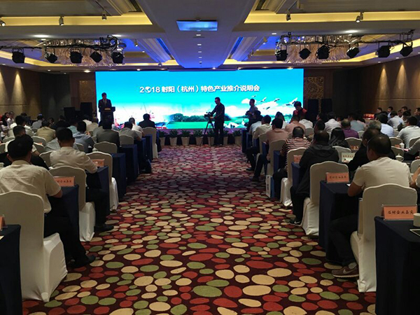 4月20日下午,新洋農場有限公司參加2018射陽(杭州)特色產業推介說明會。總經理助理王煜明出席。百余名客商代表應邀參加活動。 現場4家公司表示近期來新洋進行了項目洽談。