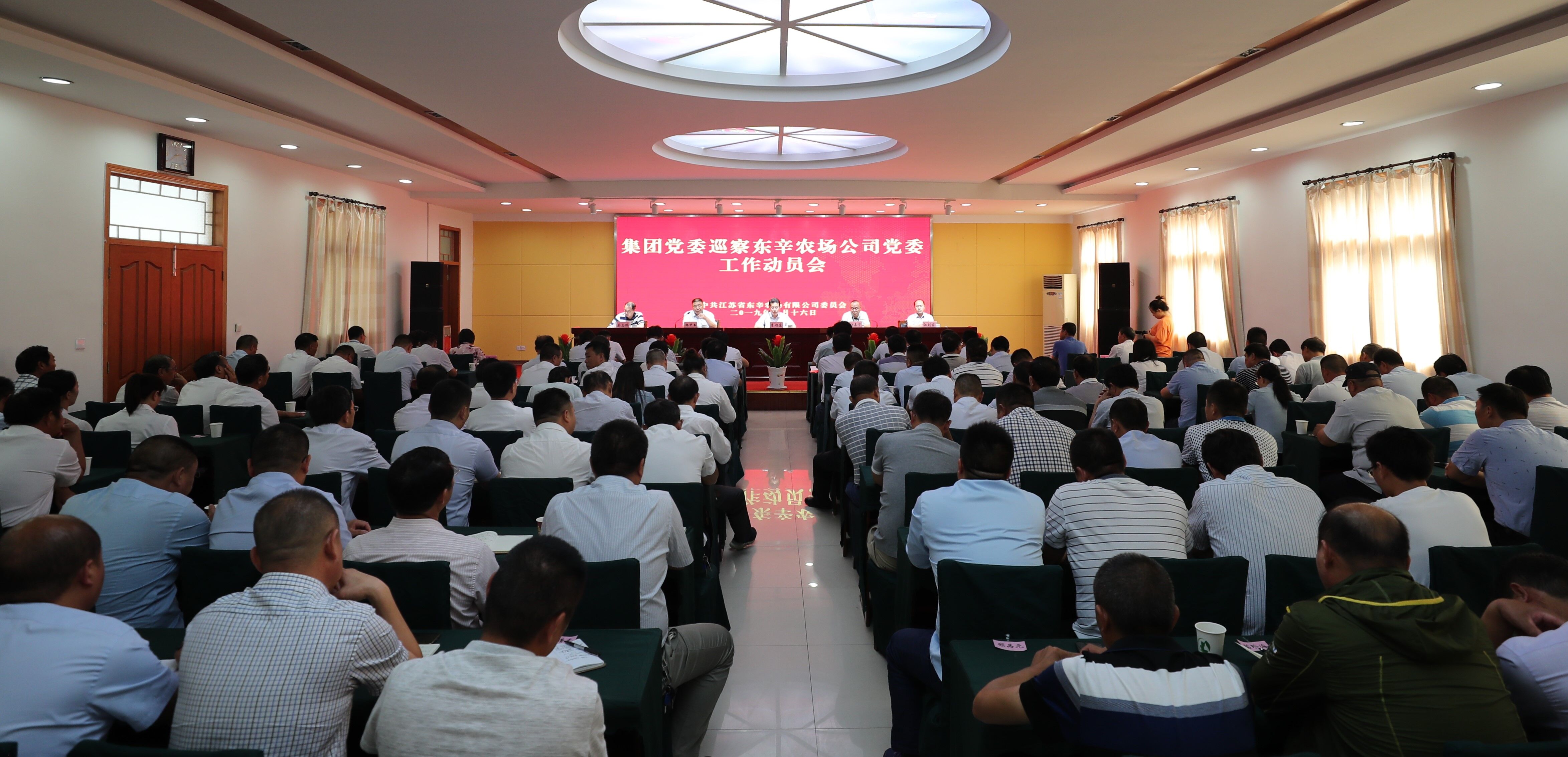 經集團黨委研究同意,根據集團黨委巡察工作領導小組的統一部署,2019年9月16日,集團黨委巡察組巡察東辛農場公司黨委工作動員會召開。會前,集團公司紀委書記、巡察辦主任李旭東主持召開與東辛農場公司黨委書記韓中書的見面溝通會,傳達了中央、省委及集團黨委關于巡視巡察工作的最新精神。會上,李旭東對巡察工作作了講話,巡察組組長許嘉寧就巡察工作作了動員。韓中書主持會議并作表態發言。集團黨委巡察組全體成員,農場公司黨委領導班子成員、農場及分公司中層助理以上班子成員,以及近三年退休人員代表、黨員和職工群眾代表參加會議。