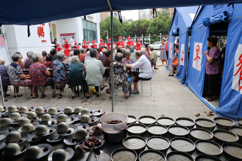 7月22日,早上5點多,第一天參加活動的支部黨員已早早來到通盛社區莫文隋愛心粥服務點,開始了一個忙碌而有意義的早晨。黨員志愿者們身著紅色馬甲,與其他志愿者一起為當天前來就餐85位孤寡老人、殘疾人、環衛工端飯送菜,忙碌不停,用最直接、最貼心的語言、行動,送上溫暖和關愛。就餐者一句簡單的謝謝,讓黨員志愿者心中都涌動著難以言盡的感。