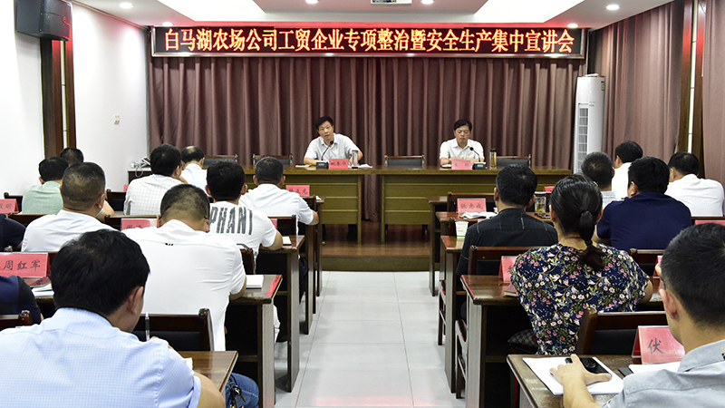 深入學習貫徹習近平關于安全生產的重要思想和黨中央、國務院決策部署,認真落實省、集團公司和地方政府相關要求,扎實推進安全生產專項整治,保證實現安全生產專項整治重點領域宣傳教育“全覆蓋”,827日上午,白馬湖農場公司召開工貿企業專項整治專題部署暨安全生產集中宣講會,由黨委書記姚春華作安全生產專題宣講,并邀請淮安區應急管理局局長陳華昌作安全生產專項整治專題部署。