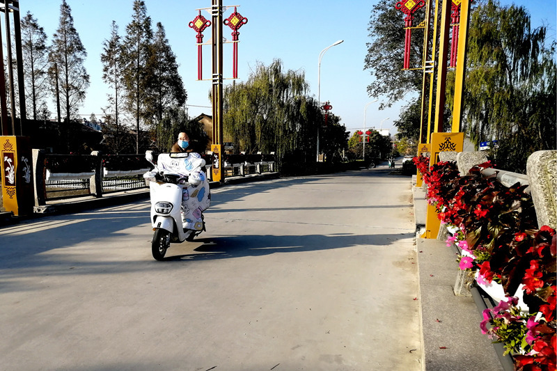 圖為中心河大橋欄桿上用鮮花裝點