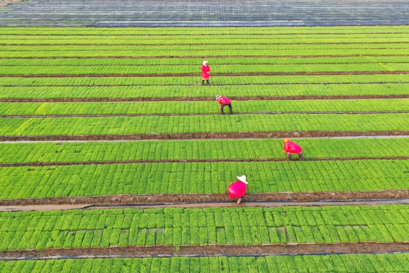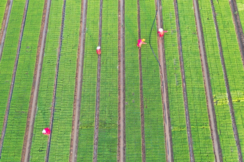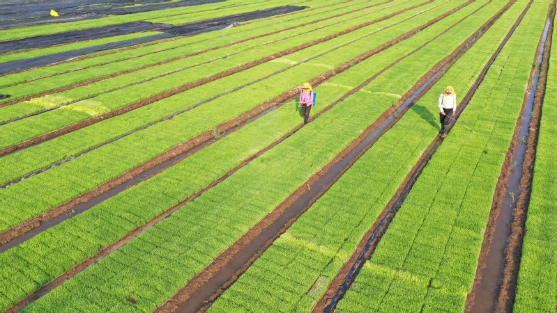 秧好半熟稻,苗好產量高521日,小滿,寶應湖農場三生產區職工正在進行小秧管理。