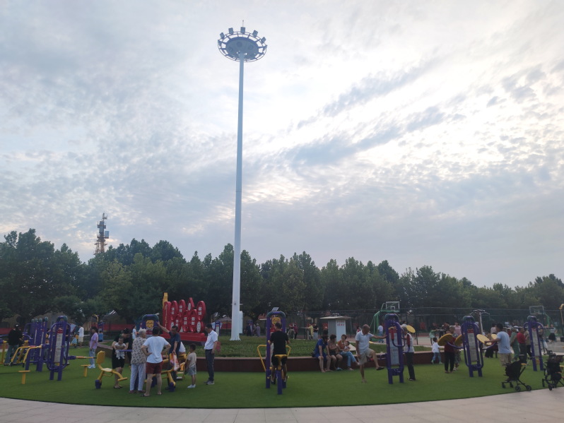 719日傍晚江蘇省射陽縣淮海農場職工休閑體育運動廣場重新開放,廣場南側橢圓形的花池邊,新安裝的34套嶄新的健身器材立即吸引了周邊的職工居民和孩童等前來愜意地玩耍,場面十分熱鬧壯觀。