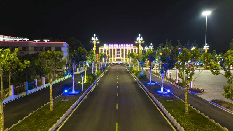夜幕降臨,華燈初上,新洋農場各處燈光陸續亮起,整個城鎮變成燈的海洋、光的世界,夜景如夢如幻景美如畫。置身于黨建文化廣場上空鳥瞰這座城鎮,燈火輝煌,溢彩流光。