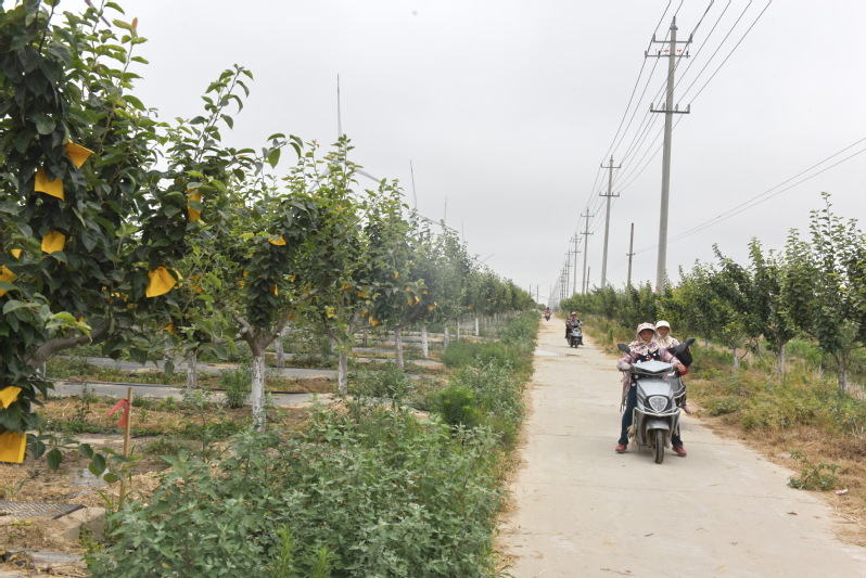 “我們資源管理中心,做的是常規的管理項目,需要一定技術含量的事情不是很多,一般的農民進來就可很好的作業;而如果遇到有點技術含量的事情,我們就現場對大家進行簡短的培訓,培訓合格以后就帶人安排他們到操作崗位上去上班。”淮海資源開發管理中心負責人顧明輝說。目前,在資源開發管理中心常年服務的人就有二三十人,多的時候有五六十人,人均月收入在3000上下。圖為在果園內完成任務的農村群眾,喜滋滋地騎著電瓶車在回家的路上。