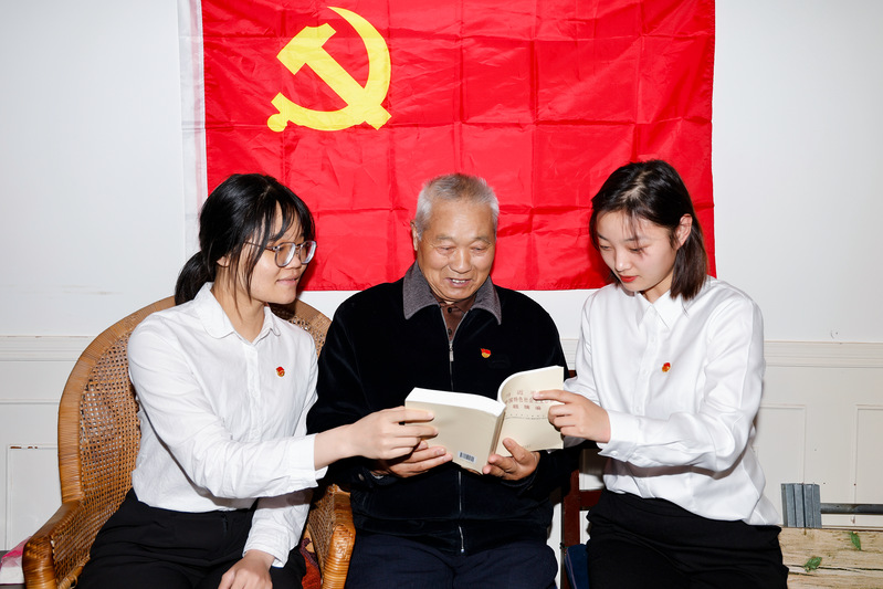 “今天我為您讀的這篇是《習近平新時代中國特色社會主義思想專題摘編》中的第二章《堅持和加強黨的全面領(lǐng)導》……”青年團員為退休老黨員耐心講解本次主題教育的核心精神和學習重點,宣傳黨的最新政治理論和方針政策。