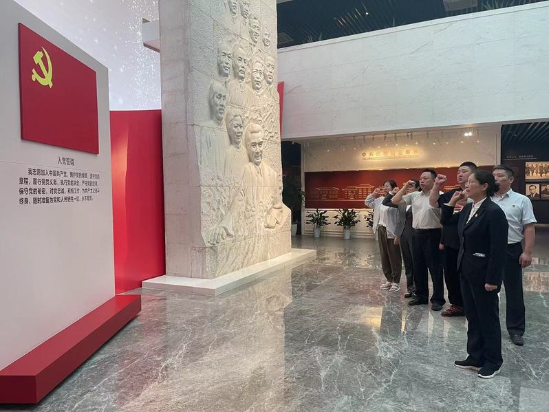 首先,全體黨員來到陳列廳正中央,面對漢白玉浮雕和鮮紅的黨旗重溫入黨誓詞,回顧入黨時的莊嚴承諾和初心使命,進一步增強理想信念。隨后,全體人員參觀了國共南京談判史料陳列館,認真觀摩館內(nèi)陳列的歷史文獻、展板、影像等,在一幅幅泛黃的照片、一件件簡樸的實物、一段段珍貴的影像資料前駐足凝視。周恩來戴過的禮帽、代表團的戶口卡、董必武的銅墨盒,一件件珍貴的文物,帶領(lǐng)大家穿越時光,回到共和國誕生前的至暗時刻,讓大家切身感受了以周恩來為代表的共產(chǎn)黨人高尚的品格情操、堅定的理想信念、無畏的革命精神。隨后大家不約而同地駐足在習總書記在紀念周恩來同志誕辰120周年座談會上對于周總理褒獎的文字前,這“六個杰出楷模”正是應(yīng)當樹立的標桿和榜樣。參觀結(jié)束后,支部黨員們集體過“迎七一,共憶入黨初心”政治生日,支部書記為大家發(fā)放“政治生日”賀卡,勉勵大家要進一步強化身份意識、宗旨意識和責任意識,恪守初心使命,永葆政治本色,永遠跟黨走。