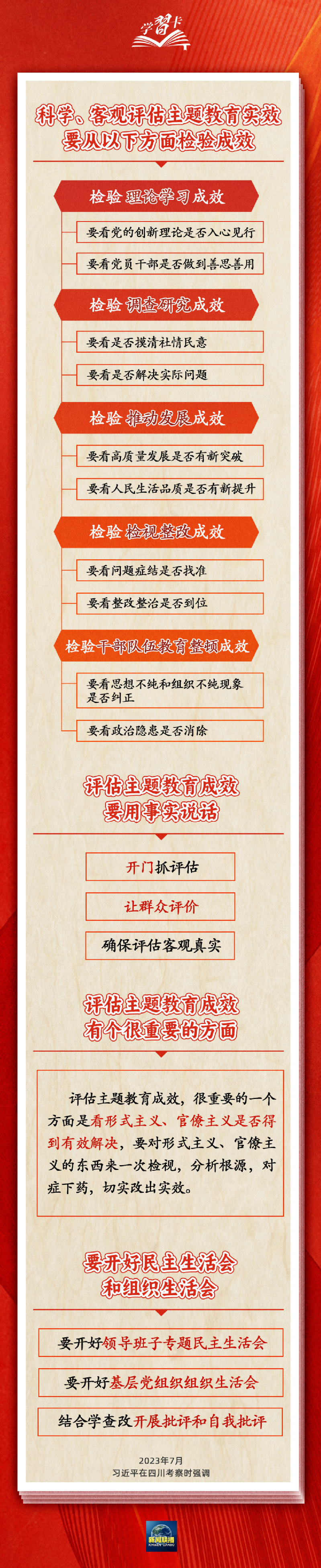 當前,全黨正在深入開展學習貫徹習近平新時代中國特色社會主義思想主題教育。7月25日至27日,習近平總書記在四川考察時強調,第一批主題教育只剩下一個多月時間,各級黨組織要落實黨中央部署,善始善終、慎終如始,務求實效。要對主題教育的實效進行科學、客觀評估。