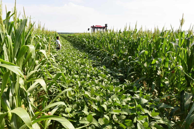 玉米雄穗剛露頭尚未開花散粉時進行去頂(去掉玉米雄穗),既能讓玉米提前成熟3-5天,又可以使玉米籽粒灌漿相對集中、減少養分消耗,可以降低株高防風防倒,改善玉米基部及行間大豆光照積累,減少穗部易患玉米螟、蚜蟲等害蟲的危害,從而達到增產的目的。