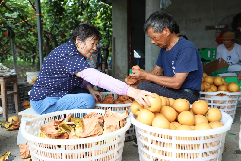 近日,江心沙農場“明星水果”秋月梨、陽光玫瑰等火爆上市,迎來海量訂單,僅兩日就售出2000箱,20000余斤。據介紹,此次訂單主要來自周邊市場,還沒開園就咨詢電話不斷,其中往年老顧客占八成,回頭率頗高。圖為批量采摘、包裝,和零售場景。