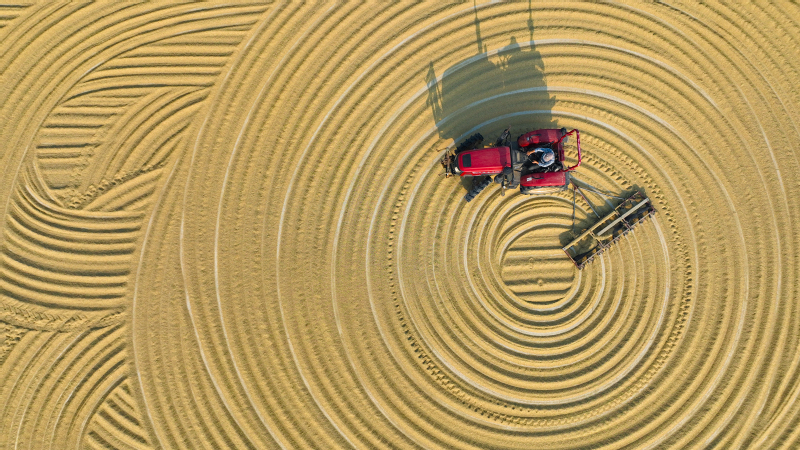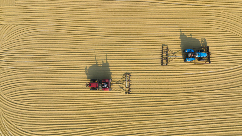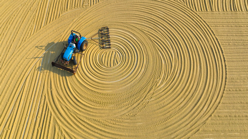 10月18日,在蘇墾農發新洋分公司高標準糧食曬場,工人們正在用機械翻曬新收獲的水稻,呈現一派繁忙的豐收景象。近年來,蘇墾農發新洋分公司深入實施“藏糧于地、藏糧于技”戰略,始終把糧食安全放在重要位置,加快推進高標準農田建設,全力提升糧食生產效率和水平。