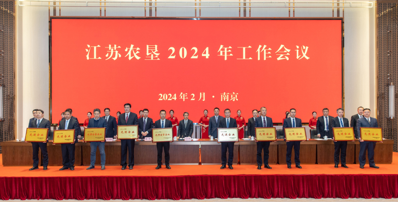 會上表彰了2023年度江蘇農墾先進企業、突出貢獻企業、開拓創新企業、優秀合資企業和社區工作先進單位,簽訂了糧食(油料)安全工作責任狀、安全生產責任狀,蘇墾農發、東辛農場公司、正大天晴、通宇地產、投資公司、蘇舜公司作了交流發言,黃海農場公司、新曹農場公司、新洋農場公司、蘇墾南通公司、土地公司、勤奮藥業作了書面交流。