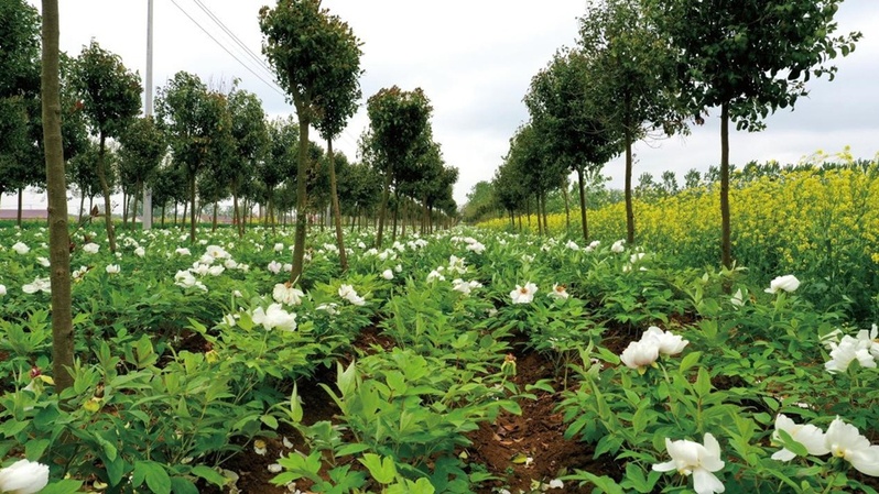 為了讓“綠葉子”變成“金票子”,黃海農(nóng)場(chǎng)科學(xué)利用林間隙地,大力發(fā)展林下經(jīng)濟(jì),在一排排女貞樹(shù)下,油用牡丹茁壯成長(zhǎng)。“采用女貞和油用牡丹林間套種模式,能相互取長(zhǎng)補(bǔ)短,實(shí)現(xiàn)提產(chǎn)量、增效益、保生態(tài)等多贏目標(biāo)。”農(nóng)場(chǎng)林業(yè)中心主任王虎義說(shuō)。
