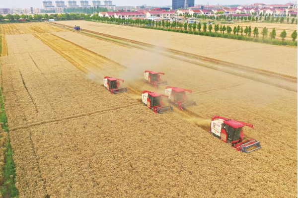 24日,隨著5臺(tái)收割機(jī)在田間來(lái)回穿梭,江心沙農(nóng)場(chǎng)本部小麥正式開鐮收割,吹響“本部+外拓+全托管”3萬(wàn)余畝夏糧收割會(huì)戰(zhàn)集結(jié)號(hào)。全力以赴趕進(jìn)度,在確保顆粒歸倉(cāng)的同時(shí),為水稻移栽、夏玉米播種等騰出空間、搶出時(shí)間,實(shí)現(xiàn)高效騰茬和收、種、管無(wú)縫銜接。