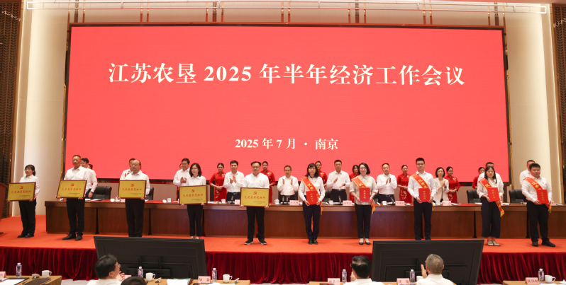 7月22日,江蘇農墾2025年半年經濟工作會議在南京召開。總結回顧上半年工作,分析當前經濟形勢,部署下半年工作,動員集團公司上下堅定信心、群策群力,搶抓機遇、乘勢而上,為完成全年目標任務而不懈奮斗。集團黨委書記、董事長吳本輝講話,黨委副書記、總經理姜建友作經濟分析報告,黨委副書記朱浩主持會議并宣讀“兩優一先”表彰決定,副總經理劉耀武通報對標一流爭先進位和重大項目推進半年完成情況。集團公司領導王立新、殷紅、劉衛華、周倍佳、鄧國新、丁濤出席會議。