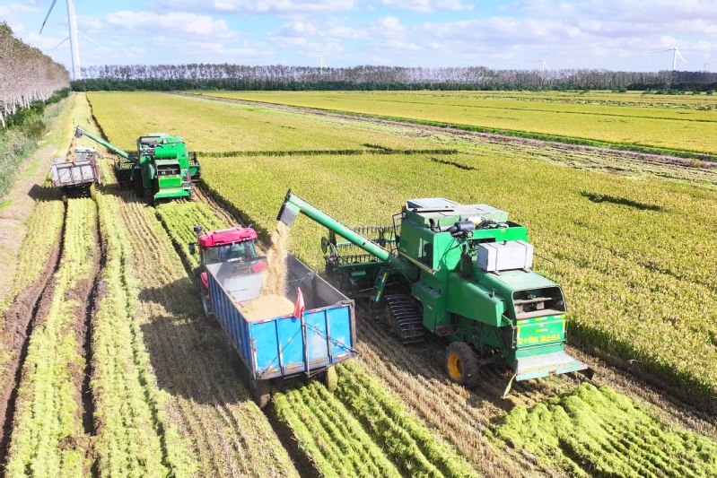 學習強國|鹽城射陽:晴日搶收戰金秋 8萬畝水稻收割全速推進