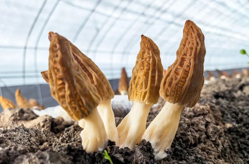 走進基地東側羊肚菌專屬大棚,隔絕了室外微涼的春風,棚內暖意融融,濃郁的菌香撲面而來,格外沁人心脾。放眼望去,一朵朵褐色的羊肚菌頂著獨特的蜂窩狀“小傘”,錯落有致地扎根在濕潤的菌床上,個個肉質肥厚、形態飽滿、色澤鮮亮,密密麻麻鋪滿整片菌壟,長勢格外喜人,滿眼都是生機勃勃的豐收景象。