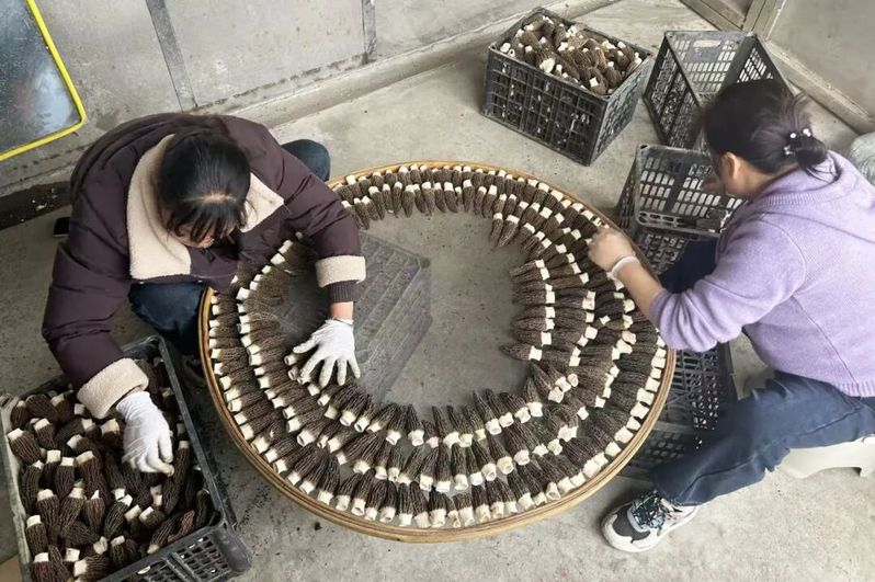 “今年羊肚菌品質格外好,菇型勻稱、肉質厚實,產量比去年漲了不少!”基地現場管理人員指著滿棚菌菇介紹。目前基地日采摘量已經從初期的100斤穩步提升至400多斤,采收周期還能持續一個月左右,依托精細化管理,今年整體產量預計同比提升20%至40%。