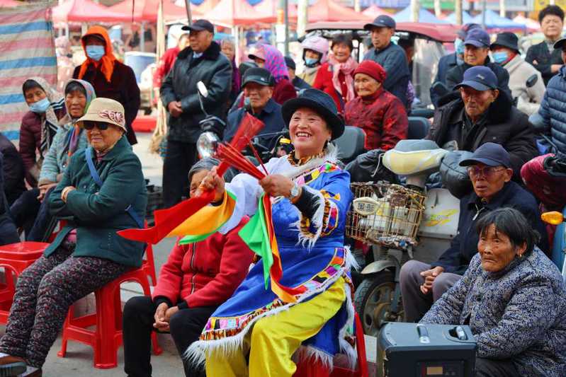 3月26日,江蘇省連云港市海州區(qū)江蘇農(nóng)墾崗埠農(nóng)場(chǎng)鄉(xiāng)村大集,民俗表演吸引路人駐足。