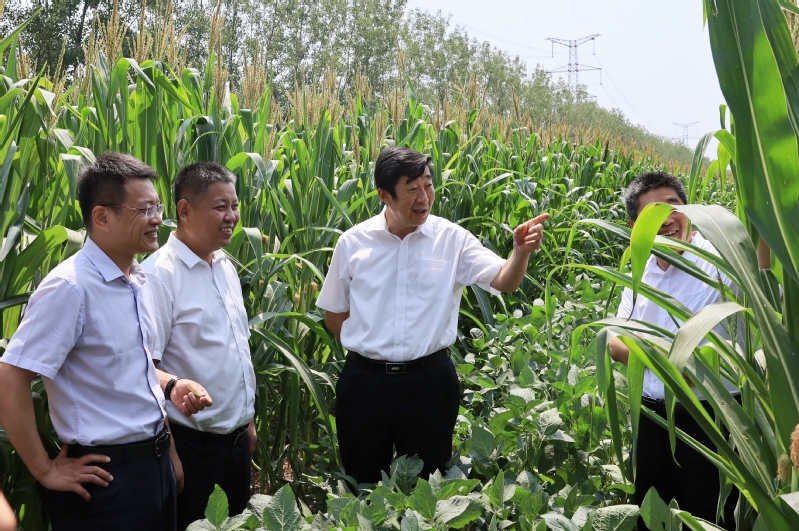 8月16日下午,集團公司黨委副書記、總經理胡兆輝到淮海調研指導工作。在蘇墾農發淮海分公司第一生產區和第二生產區的玉米大豆帶狀復合種植及水稻秧苗現場,胡兆輝親切慰問了奮戰在一線的干部職工,實地察看玉米大豆的生長情況、玉米切頂機田間作業流程和在田水稻作物的長勢,聽取蘇墾農發淮海分公司在玉米大豆帶狀復合種植工作及水稻田間管理等方面的情況匯報,對蘇墾農發淮海分公司秋熟作物生產管理給予肯定。胡兆輝指出,玉米切頂機的使用,可以使玉米籽粒灌漿相對集中、降低株高防風防倒、提升大豆光照積累,是一條被科學證明了的增產措施。胡兆輝要求,蘇墾農發淮海分公司在玉米大豆帶狀復合種植上,要進一步做好科技創新指導與服務工作,利用自身優勢,做好新機械、新技術和新經驗的總結和技術提煉,通過大面積示范種植,為提升玉米大豆帶狀復合種植高產高效奠定基礎。