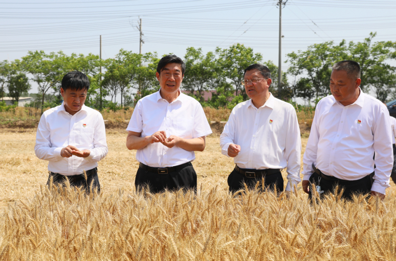 6月12日下午,集團公司黨委書記、董事長魏紅軍到東辛調研。他強調,要深入扎實開展學習貫徹習近平新時代中國特色社會主義思想主題教育,把“學思想、強黨性、重實踐、建新功”總要求貫穿始終,堅持問題導向,深化調查研究,持續提高發現問題、研究問題、解決問題的能力,以實實在在的工作業績檢驗主題教育成果。魏紅軍針對東辛漁光互補項目前期規劃中可能存在的問題,前往灌云洋橋漁光一體光伏發電項目現場考察,詳細了解相關經驗做法。隨后在東辛小麥制種大縣項目現場聽取“三夏”工作情況介紹,并對東辛“三夏”工作取得階段性勝利表示肯定。魏紅軍強調,要堅決抓好糧食安全這件頭等大事,決不能有任何松勁歇腳的思想,牢牢把握主動權,確?!叭摹比〉萌珓佟R罅嵤┘瘓F公司強核戰略和種業振興行動,將小麥制種大縣項目打造成東辛的一張名片。邁上新征程,東辛要聚焦影響高質量發展突出問題,進一步樹立“謀大事、干大事、成大事”的鮮明導向,抓好產業發展,強化內部管理,提升經營效益,不斷增強核心競爭力,在事關全局、事關發展、事關長遠的研究謀劃、難題破解上取得新進展新成效,奮力在墾區高質量發展和現代化建設中繼續當好排頭兵,為打造現代農業航母“江蘇