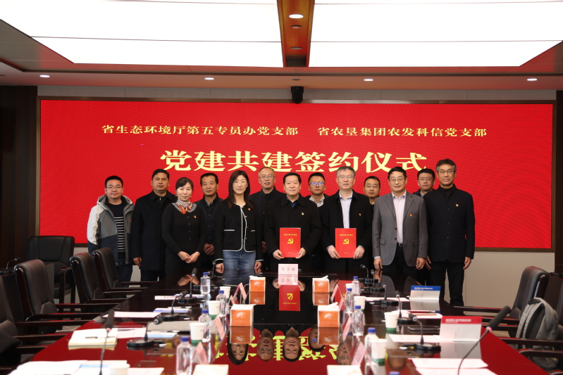 為高質量推動黨建與業務工作融合發展,加強支部間學習交流,12月13日上午,省生態環境廳第五專員辦黨支部與集團公司農發科信黨支部開展了以“緬懷革命先輩承壯志,推動綠色發展再攻堅”為主題的黨建共建活動暨簽約儀式。省生態環境廳第五專員辦主任、黨支部書記趙繼平出席活動,集團黨委委員、副總經理王立新主持簽約儀式。趙繼平對江蘇農墾近年來在生態轉型與綠色發展、完善生態環境治理體系等方面取得的成績表示肯定。他指出,此次聯合黨建活動,對于樹立雙方始終保持治污攻堅政治定力,始終堅守“只能更好、不能變壞”的底線有重要推動作用。同時也搭建了雙方業務交流、信息互通的平臺,拓展了治污攻堅“朋友圈”,發揮了黨建“加油站”作用,不斷把組織優勢轉化為發展優勢,把組織活力轉化為治理效能,推動生態環保工作上臺階、見實效。王立新對省生態環境廳第五專員辦的關心和支持表示感謝。他指出,在省生態環境廳第五專員辦的幫助、指導和協調下,江蘇農墾搶抓省環保督察整改契機,推進解決很多難點堵點問題。希望以此次簽約為新的起點,加強交流聯系,為江蘇農墾提升環保治理能力、改善生態環境質量、推進綠色高質量發展提供強大動力。活動期間,雙方黨支部書記簽