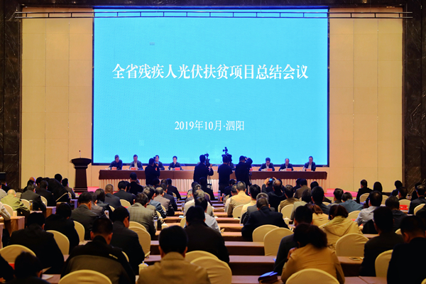 10月31日,全省殘疾人光伏扶貧項目總結(jié)會議在宿遷市泗陽縣召開,省委副書記任振鶴出席并講話。省慈善總會會長蔣宏坤出席會議。集團(tuán)公司黨委書記、董事長魏紅軍在會上發(fā)言,黨委副書記、總經(jīng)理胡兆輝出席會議