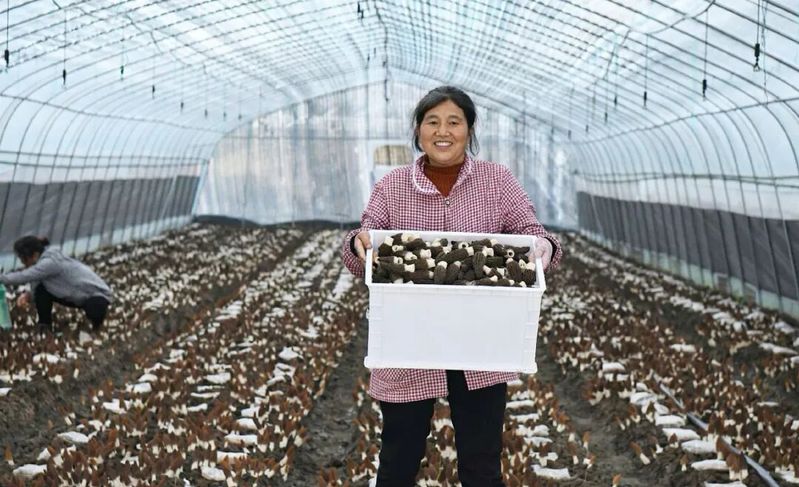 蟄伏一冬積蓄養(yǎng)分,春日暖陽里,白馬湖農(nóng)場科研示范基地的羊肚菌迎來集中豐收季,基地20個種植大棚內(nèi),珍稀菌菇破土冒頭,職工搶抓時節(jié)采收,鮮嫩羊肚菌搶“鮮”上市,奏響春日采收序曲。走進基地東側(cè)羊肚菌專屬大棚,隔絕了室外微涼的春風,棚內(nèi)暖意融融,濃郁的菌香撲面而來,格外沁人心脾。放眼望去,一朵朵褐色的羊肚菌頂著獨特的蜂窩狀“小傘”,錯落有致地扎根在濕潤的菌床上,個個肉質(zhì)肥厚、形態(tài)飽滿、色澤鮮亮,密密麻麻鋪滿整片菌壟,長勢格外喜人,滿眼都是生機勃勃的豐收景象。棚內(nèi)沒有片刻空閑,職工擺放好采收筐,手持專用小刀,彎腰穿梭在菌壟之間,動作嫻熟又輕柔。他們精準挑選達到采收標準的成熟菌菇,輕輕下刀割下菌柄,隨后仔細清理根部泥土、修剪多余雜質(zhì),再按照品相大小分級入筐,指尖翻飛間,一筐筐鮮嫩的羊肚菌陸續(xù)碼放整齊,現(xiàn)場采收節(jié)奏緊湊、井然有序。“今年羊肚菌品質(zhì)格外好,菇型勻稱、肉質(zhì)厚實,產(chǎn)量比去年漲了不少!”基地現(xiàn)場管理人員指著滿棚菌菇介紹。目前基地日采摘量已經(jīng)從初期的100斤穩(wěn)步提升至400多斤,采收周期還能持續(xù)一個月左右,依托精細化管理,今年整體產(chǎn)量預計同比提升20%至40%。基地依托科技賦能種植,通過自動