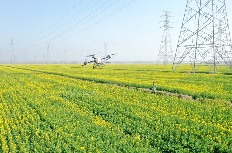 新曹農(nóng)場(chǎng)8千畝油菜進(jìn)入初花期,金黃花海在晴日里鋪展成畫。植保無(wú)人機(jī)低空穿梭于田壟間,精準(zhǔn)噴施藥劑開(kāi)展油菜菌核病防治作業(yè)。田埂上,農(nóng)技人員手持操控設(shè)備緊盯飛行軌跡,以高效智能的現(xiàn)代化植保方式,為油菜生長(zhǎng)關(guān)鍵期筑牢防線,用科技賦能春耕生產(chǎn),保障油料作物豐產(chǎn)增收。