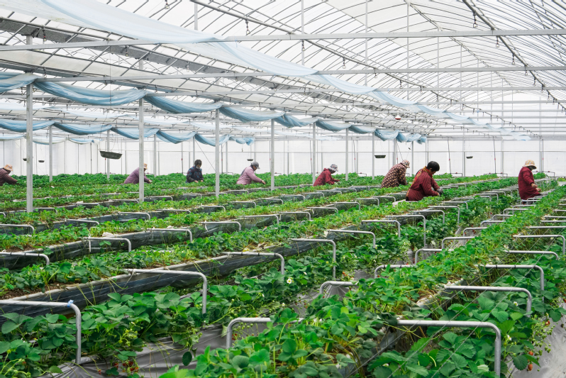 近期,三河農場草莓苗繁育工作全面展開,預計今年將繁育草莓苗300萬株左右。圖為工人在繁育大棚內整理匍匐莖。