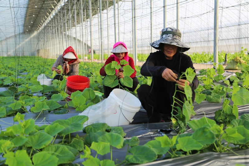 隨著秋季的到來,崗埠高效農(nóng)業(yè)示范園也忙碌起來。位于園區(qū)東側(cè)的28*100型的4號(hào)溫室大棚內(nèi),工人們正忙碌著進(jìn)行水果黃瓜吊藤蔓和去除多余枝葉等秋季管理工作。在這個(gè)季節(jié),他們需要更加精心地照料這些綠意盎然的植物,以確保在接下來的幾個(gè)月里,水果黃瓜能夠持續(xù)豐收。“今年我們總共種植了5000多株水果黃瓜,目前氣溫光照條件很好,長勢不錯(cuò)。”園區(qū)負(fù)責(zé)人包明建介紹,秋季的氣候條件對(duì)水果黃瓜的生長至關(guān)重要。由于晝夜溫差較大,大棚內(nèi)的溫度管理成為園區(qū)關(guān)注的焦點(diǎn)。為了保證水果黃瓜的正常生長,園區(qū)管理人員需要適時(shí)調(diào)整大棚內(nèi)的溫度和濕度。通過使用現(xiàn)代化的溫控設(shè)備,管理人員可以精確地控制大棚內(nèi)的環(huán)境,確保水果黃瓜在適宜的條件下生長。除了溫度管理,水肥管理也是秋季水果黃瓜種植的關(guān)鍵環(huán)節(jié)。隨著黃瓜進(jìn)入生長旺盛期,對(duì)養(yǎng)分的需求量逐漸增加。園區(qū)充分運(yùn)用水肥一體化系統(tǒng),根據(jù)黃瓜的生長階段和天氣情況,將有機(jī)肥與灌溉相結(jié)合,進(jìn)行科學(xué)配比,適時(shí)進(jìn)行灌溉,以保證黃瓜的健康生長。“為了確保水果黃瓜的綠色無公害,我們在防蟲方面,也采取了物理方法,最大程度保證果蔬作物的新鮮和品質(zhì)。”在管理人員的精心照料下,大棚內(nèi)的水果黃瓜長勢喜人,綠