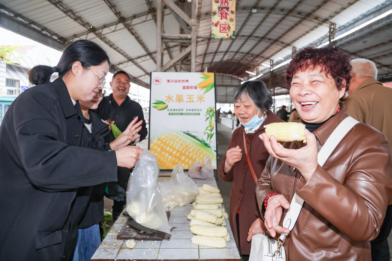 眼下,新洋林業(yè)公司種植基地的秋季水果玉米迎來了豐收季,基地內(nèi)一株株玉米飽滿挺拔,籽粒飽滿,連空氣都彌漫著玉米的清香。公司員工正忙著穿梭于玉米田間采收玉米,不一會(huì)兒就裝滿了一大車。基地負(fù)責(zé)人趙丙華仔細(xì)檢查玉米的合格率后,一根根玉米隨即被運(yùn)往市縣商超、農(nóng)貿(mào)市場、居民小區(qū)。“新洋農(nóng)場‘美爾姿’牌甜糯玉米出鍋啦,口感甜糯脆嫩,不好吃不要錢!”10月27日上午,伴隨著一聲吆喝,新洋農(nóng)場農(nóng)貿(mào)市場的秋季水果玉米攤位前擠滿了想要嘗鮮的人群,熱氣騰騰,玉米香氣蔓延開來,縈繞鼻尖,讓人垂涎欲滴。熱銷現(xiàn)場,林業(yè)公司副總經(jīng)理蔡仿向顧客們介紹:“這是我們林業(yè)公司今年試種的‘白甜糯209’水果玉米新品種,來自連云港市農(nóng)科院,生吃鮮嫩可口,這樣輕輕掐一下就會(huì)爆汁,蒸煮后香甜軟糯、口感更好。現(xiàn)在賣的是晚期甜糯玉米,生產(chǎn)期3個(gè)月以上,比春玉米長10多天,營養(yǎng)成分高,更加美味,淀粉含量很低,對(duì)減肥人士更加友好,又稱‘美容玉米’。這是今年最后一批玉米了,3元一斤,價(jià)格不貴,機(jī)不可失,時(shí)不再來,歡迎搶購!”“這玉米真甜啊,吃起來糯糯的,脆脆的,是我今年吃過最好吃的玉米了,給我來3斤。”“我要10斤,這你們就不知道了吧,玉米不
