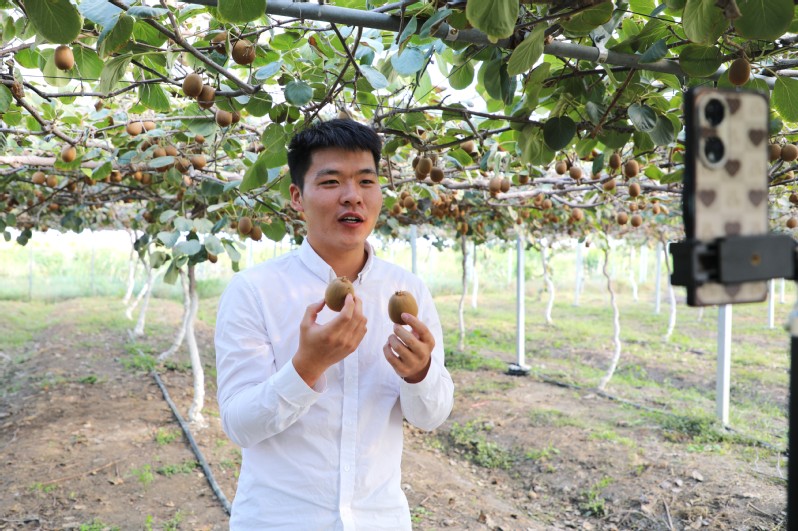 “歡迎大家來到江蘇省三河農場直播間,我們今天是在三河農業科技示范園區的獼猴桃種植基地直播,讓大家更直觀的體驗采摘的樂趣,如果您在我們周邊,可以到園區來看看哦,今天直播期間,我們給大家準備了福利,直播期間下單有優惠哦,想吃純自然、原生態的獼猴桃趕緊下單囤券哦”。10月4日下午,一場別開生面的直播在三河農業科技示范園區獼猴桃種植基地進行。直播中,主播憑其生動有趣的解說和對獼猴桃品質的專業展示,吸引了進入直播間觀眾的目光。鏡頭前,一顆顆飽滿多汁、果香四溢的獼猴桃掛滿枝頭,讓人垂涎欲滴。主播不僅詳細介紹了三河獼猴桃的種植環境、生長管理過程和獨特的營養價值,還通過鏡頭帶大家參觀獼猴桃園,讓觀眾們更直觀的感受到其鮮美口感。“我們的獼猴桃都是純天然種植,不打農藥,全部施用農家肥,獼猴桃口感獨特,大家可以放心購買!”主播的真誠推薦贏得了觀眾們的信任,直播間里互動頻繁,點贊不斷。一個多小時的直播售出獼猴桃團購采摘券36張。