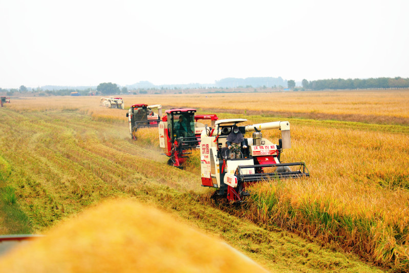 據氣象部門預報,10月17-19日,盱眙境內有一場較強降雨。面對秋收嚴峻形勢,三河與時間賽跑,雨前,一場水稻搶收戰在各農業生產區田間緊張上演。為了提高搶收效率,該場提前對收割機等設備進行了全面檢修和維護,確保參加搶收的一百余臺收割機在高強度作業下不出故障。同時,積極做好與烘干廠和倉儲企業的溝通協調,提前做好稻谷烘干和儲存的準備工作,確保收割上來的稻谷安全入倉入庫。截止10月16日晚,該場1.32萬畝早熟水稻全部搶收結束,安全入庫。