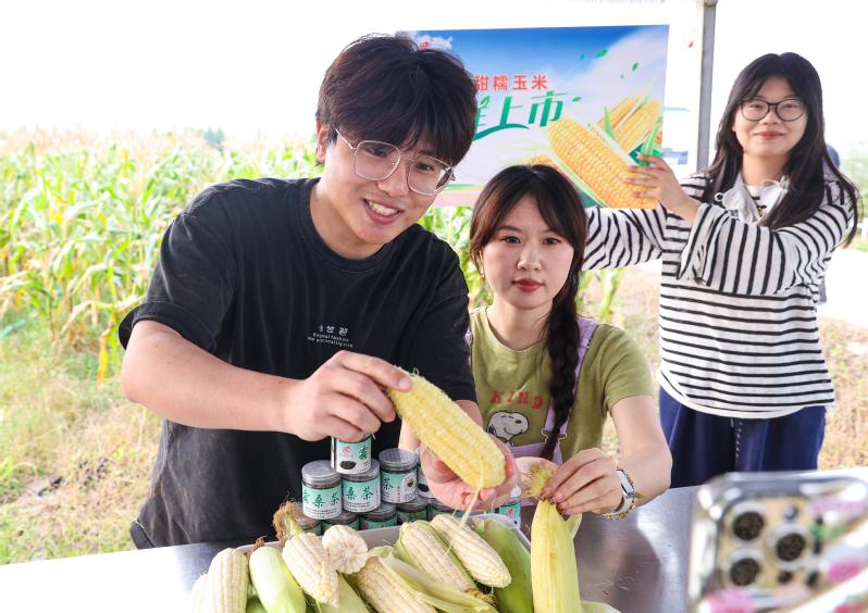 “大家好,又到了玉米采摘的時候,云水灣濕地公園的甜糯玉米新鮮上市,大家快來購買!”鏡頭前,云水灣濕地公園的工作人員正在賣力推銷著甜糯玉米,錄制抖音短視頻。金秋時節,玉米香甜。走進云臺農場玉米種植基地,放眼望去,一排排玉米成熟飽滿、長勢喜人,空氣中到處彌漫著鮮食玉米的香味。趁著晴好天氣,工人們加緊對玉米進行采收,確保盡快銷往市場。“往年我們的玉米常常供不應求,今年秋天我們專門種植了15畝甜糯玉米,供應市場,采摘期從10月初,一直持續到月底,確保這一整個月游客來園區都能吃到新鮮的甜糯玉米。”云水灣濕地公園副總經理卜馳龍說。采摘、裝袋、搬運、裝車……現場一片繁忙景象,大家臉上洋溢著豐收的喜悅。為了打通銷售市場,云水灣濕地公園除了創建微信團購群堅持每日為市區顧客送貨上門外,還進行玉米專場直播,采取買玉米就送園區自制的桑霜茶、滿兩單包郵等方式促進消費者購買熱情。短短一小時的直播,顧客下單超60單,點贊量達3.8萬次,有效拓寬銷售渠道。截至目前,云水灣甜糯玉米累計銷售8757斤,實現收益2.62萬元。