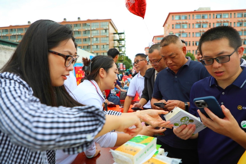 10月13日,江心沙農場受邀參加招商工業海門基地舉辦的“向高攀,向新進”慶祝招商局集團成立152周年系列慶祝活動,并在廣場設置特色農產品展位,向前來參加活動的10余家企事業單位近千人推介青玉米、青毛豆等當季農產品,并通過掃碼關注抖音賬號、拉好友入群等方式贈送小份裝試吃大米“引流”,現場收到800余份新大米預訂單。